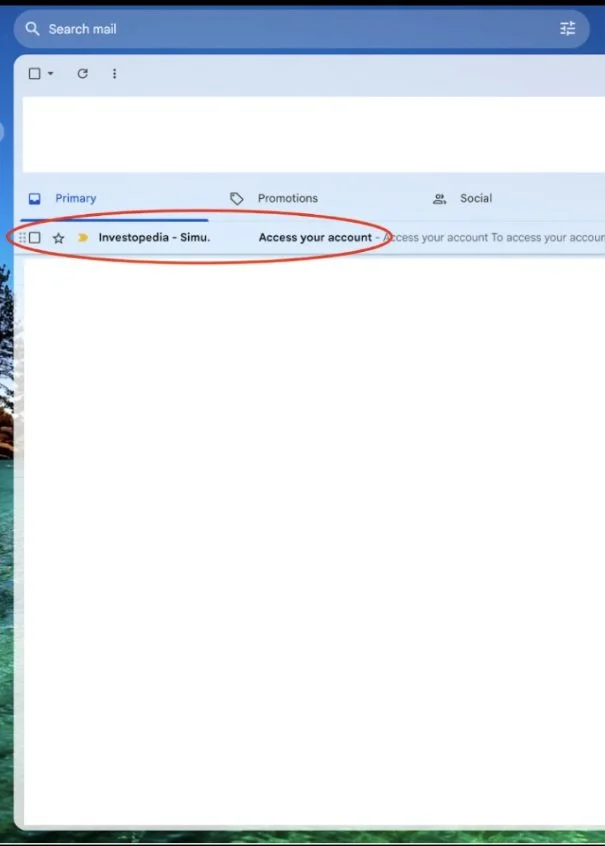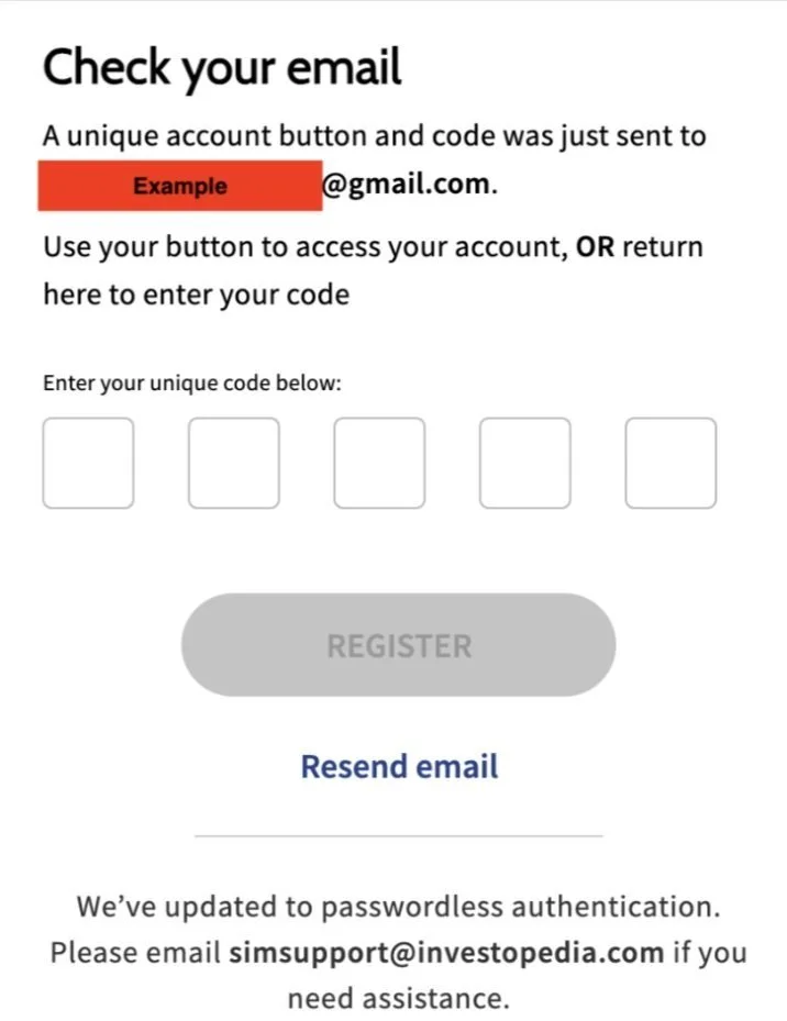 “Investopedia - Simulator” titled “Access Your Account.” Click the email.