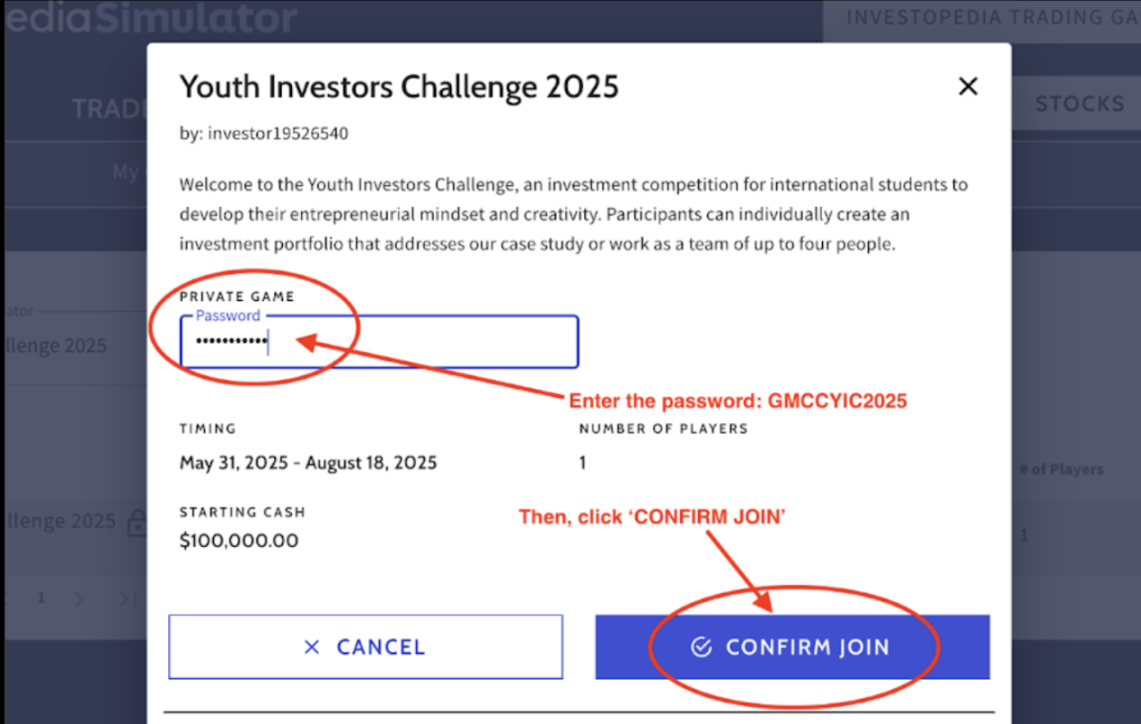 The password is “GMCCYIC2025”. Then, press ‘CONFIRM JOIN’ in the bottom right area.
